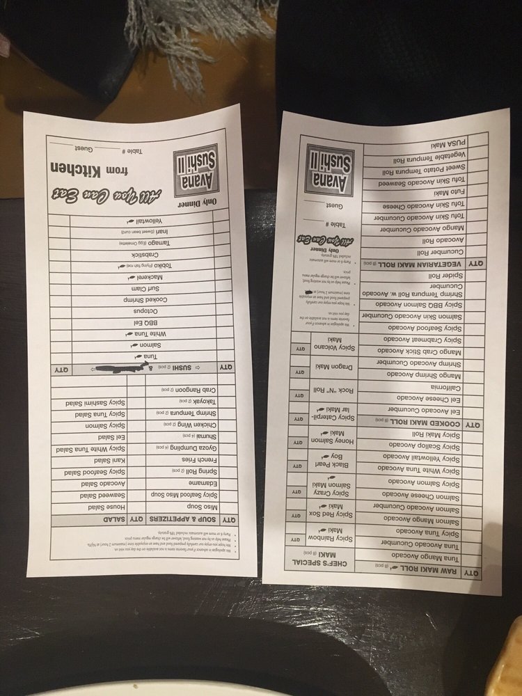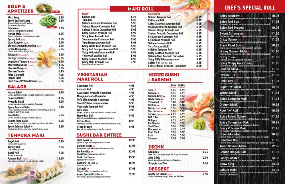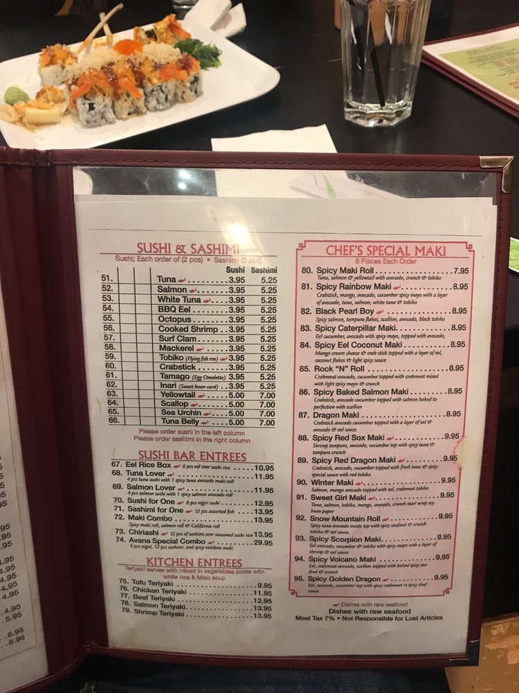 Avana Sushi 2 Menu (Update 2025)